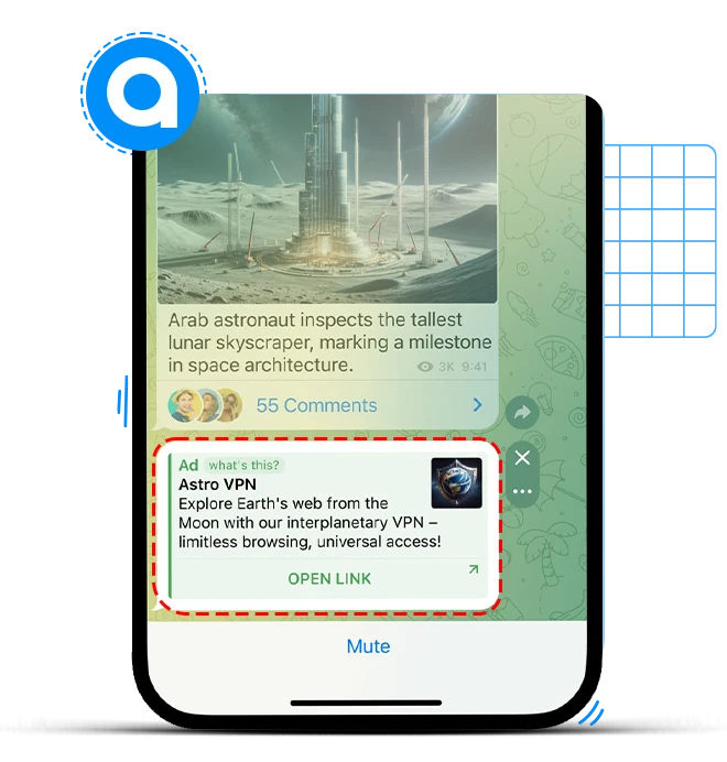 تبلیغ شما به صورت یک پست همراه با تصویر یا ویدیو و یک لینک، در کانالهای تلگرام مد نظر شما نمایش داده شوند. پستهای اسپانسری معمولاً با عبارت “Ad” مشخص میشوند تا کاربران بتوانند آنها را از پستهای معمولی تشخیص دهند.